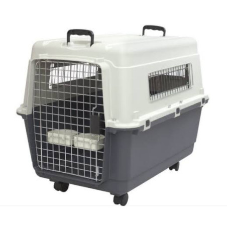 Transportador de mascotas, hecho en fibra de propileno extra resistente, cuenta con pernos y broches de seguridad, rejilla de acero inoxidable con cerrojo doble, de presión, ruedas removibles y ranuras laterales para una fácil circulación del aire, lo que le brindará un viaje cómodo y confortable a su mascota.